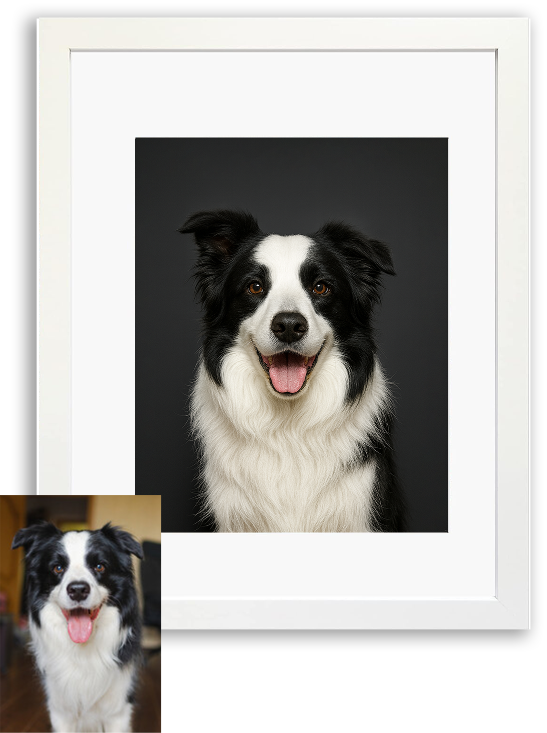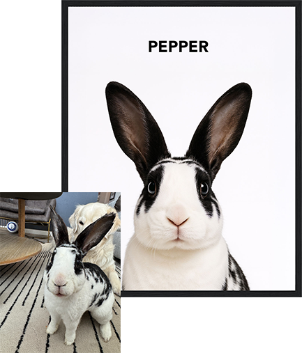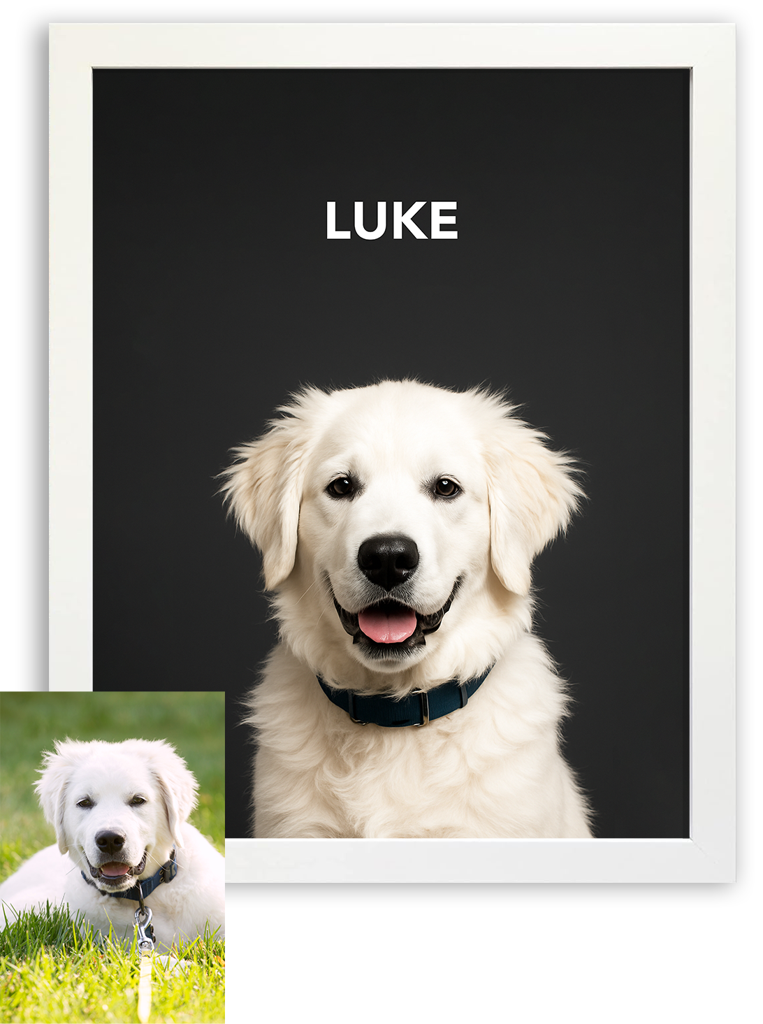 Your pet is already a work of art — we just help show it off! Each portrait is printed on gorgeous, professionally textured luster photo paper with professional-grade inks so every whisker, floof, and goofy grin looks amazing. Frames arrive ready to hang right out of the box, so the only thing you need to do is pick the perfect wall.