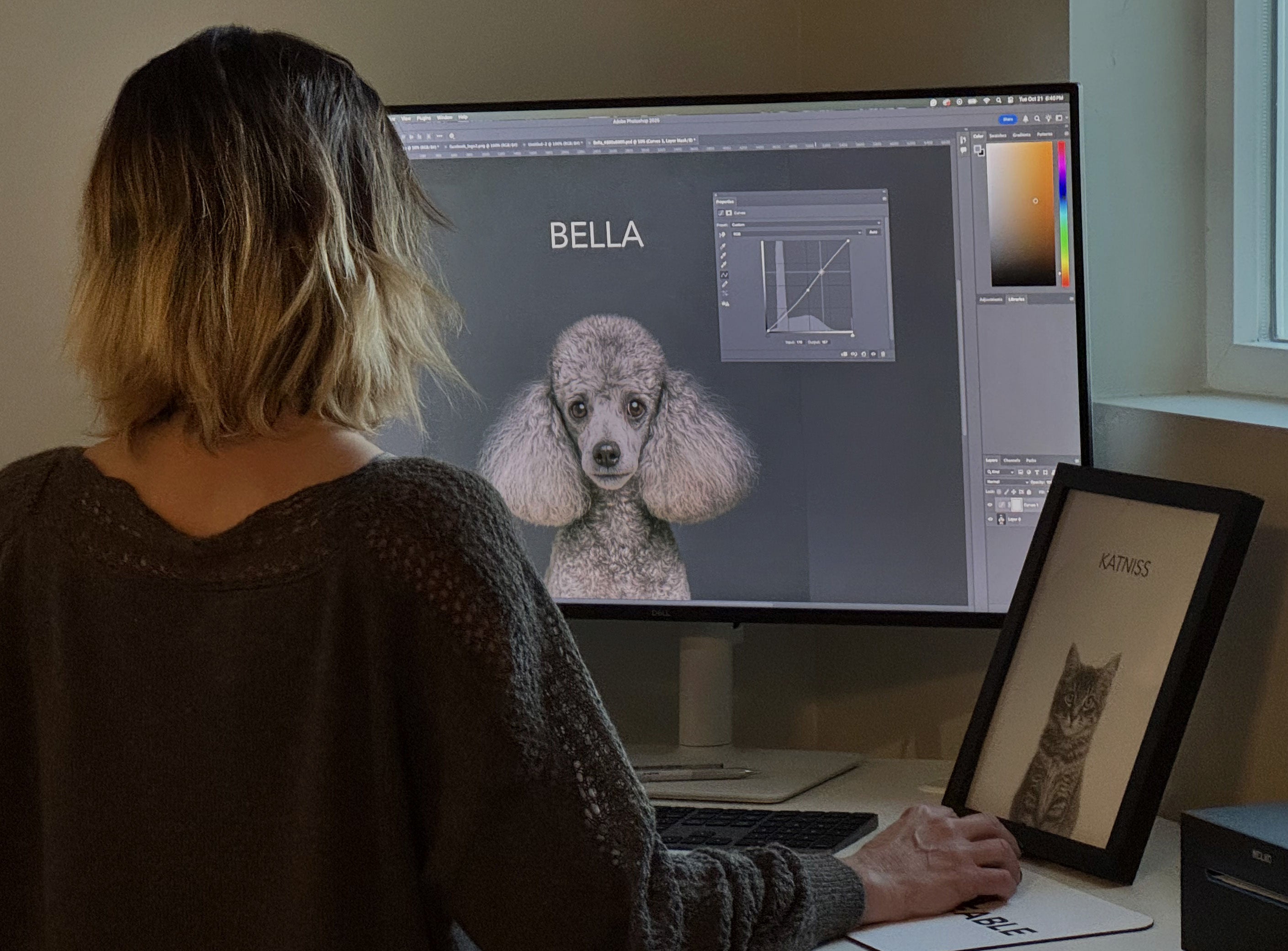 This really comes down to the photo that you choose. For example, dogs with their mouths slightly open look happier and the final product is a little lighter and can be quirkier depending on the breed. Dogs with their mouths closed look more stoic and the portrait can end up looking more dramatic and serious. We will generally keep those choices in the final product!
